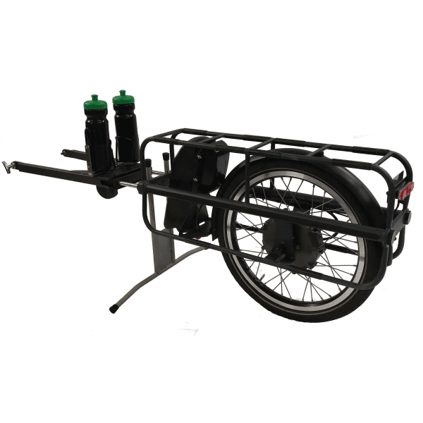 - LED achterlicht aanwezig, werkend op de batterij van de fietskar.